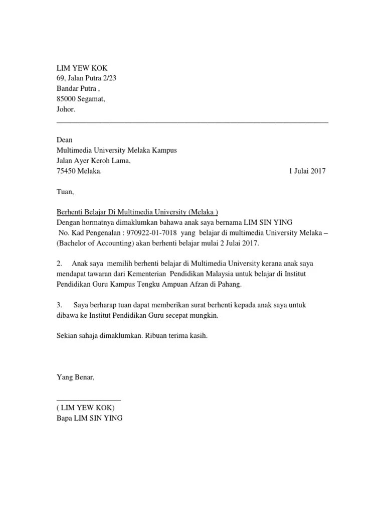 Universiti Surat Berhenti Belajar / Contoh Surat Rasmi Permohonan Berhenti Pengajian Universiti